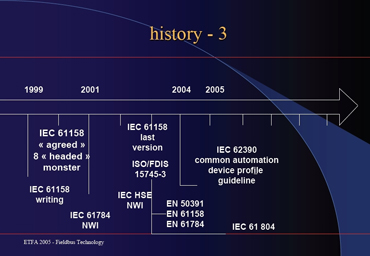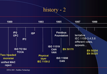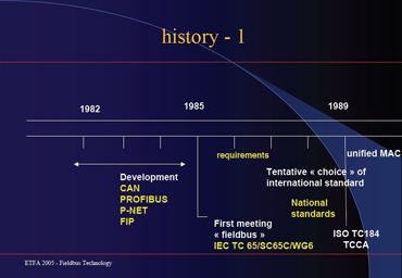 Um pouco de história pode nos situar. O setor nuclear foi o primeiro a fazer algo com a crescente necessidade de se possuir uma rede para os dados dos processos, na década de 1960. Depois, vieram o Modbus, o WDPF (para processos contínuos), o Arcnet (office communication data acquisition), o Data HighWay da Allen Bradley, o TiWay da Texas Instruments... Todos sempre visando à necessidade de rede e redução de custos; a normatização não era prioritária. Os primeiros protocolos mais bem estruturados foram os da General Motors e os da Boeing, na década de 1980, quando surgiu também a arquitetura CIM, voltada à manufatura. Ainda nos anos 80 nasceram as primeiras LANs com protocolos determinísticos e não determinísticos os conceitos OSI e os Sistemas de Controle Distribuídos ganharam espaço, mas já com os sistemas digitais buscando seu lugar. Então, a sopa de letrinhas era enorme. Mas começava-se a entender que um bus precisava ter custo menor, precisava facilitar a inclusão de instrumentos, precisava ter informação acurada, tornar a manutenção melhor e mais fácil, precisava trabalhar remotamente e com controle avançado. Os equipamentos precisavam ter um tempo de resposta maximizado. Estava certo de que o fieldbus era o suporte principal de um sistema distribuído mas também se tornou o pomo de discórdia entre os fornecedores de tecnologia, levando ao período que chamamos de “guerra dos buses”. Essa “guerra” teve um desfecho muito brasileiro pois o comitê não decidiu por um ou dois modelos, mas por oito tipos de data link layers e 10 tipos de application layers que se baseavam na IEC 61158!