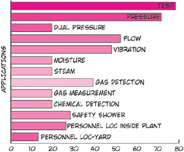 | Principais aplicações do wireless segundo pesquisa da Control/ISA100 |