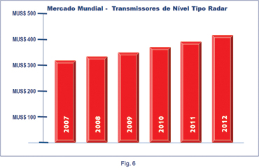 O gráfico da Fig. 6 ilustra os valores da pesquisa com transmissores de nível tipo radar. Visite http://www.arcweb.com/Research/Studies/Pages/RadarLevel.aspx para visualizar todos os tópicos detalhados nesta pesquisa. |