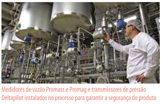 | Cerca de 20 medidores de vazão mássica do modelo Promass 83F foram utilizados para a dosagem do