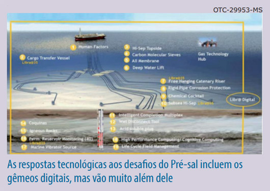 Em Libra, a escolha foi por uma abordagem incremental – conforme novas oportunidades e necessidades surgem, novas soluções vão sendo implementadas. E o modelo utilizado – denominado Libra 4.0 – interage e conecta cada sistema ou subsistema (reservatório, poço, assets submarinos) com outros ativos digitais – como FPSOs. Então, um orquestrador gêmeo é a chave para fornecer uma visão geral e completa dos ativos. E dada a exigência de interconectividade entre os elementos, existe a necessidade de adoção de protocolos, padrões e comunicação, para lidar com a heterogeneidade de dados, incluindo ajustes na especificação de contratos e simplificação de processos. Ou seja, Libra é um ambiente experimental para testar e validar soluções digitais, que amadureceu ao ponto de impactar os principais processos de negócios. |