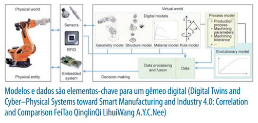 Já está acontecendo. Os dados coletados por meio de sensores permitem que um modelo virtual atue como o objeto real, o que significa que você pode manipulá-lo, monitorar partes e peças, testar abordagens, prever falhas e, ao invés de fazer suposições, se pode realmente ver o processo, e influenciá-lo.