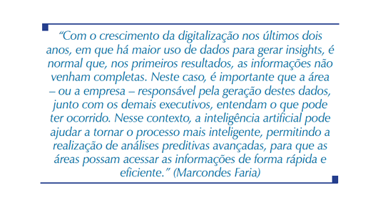 “Com o crescimento da digitalização nos últimos dois anos, em que há maior uso de dados para gerar insights, é normal que, nos primeiros resultados, as informações não venham completas. Neste caso, é importante que a área – ou a empresa – responsável pela geração destes dados, junto com os demais executivos, entendam o que pode ter ocorrido. Nesse contexto, a inteligência artificial pode ajudar a tornar o processo mais inteligente, permitindo a realização de análises preditivas avançadas, para que as áreas possam acessar as informações de forma rápida e eficiente. Falando da nossa solução, o Power BI, plataforma unificada e escalável de análise de dados para BI corporativo e por self-service, oferece o gerenciamento on-line das informações, o que pode, por exemplo, antecipar eventuais distorções ou dados incompletos. Para se ter uma ideia, nos dois primeiros anos da Pandemia, nós tivemos aumento do uso do Power BI e do Dynamics 365, nosso portfólio de aplicativos de negócios, justamente por oferecerem soluções escaláveis, e de fácil gerenciamento online, que puderam oferecer resiliência aos nossos clientes, com base em dados, para auxiliá-los a ultrapassar este momento desafiador”, diz Marcondes, da Microsoft.